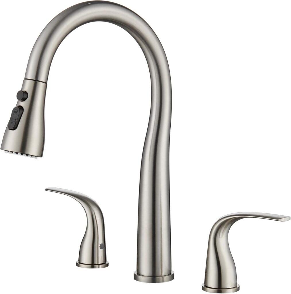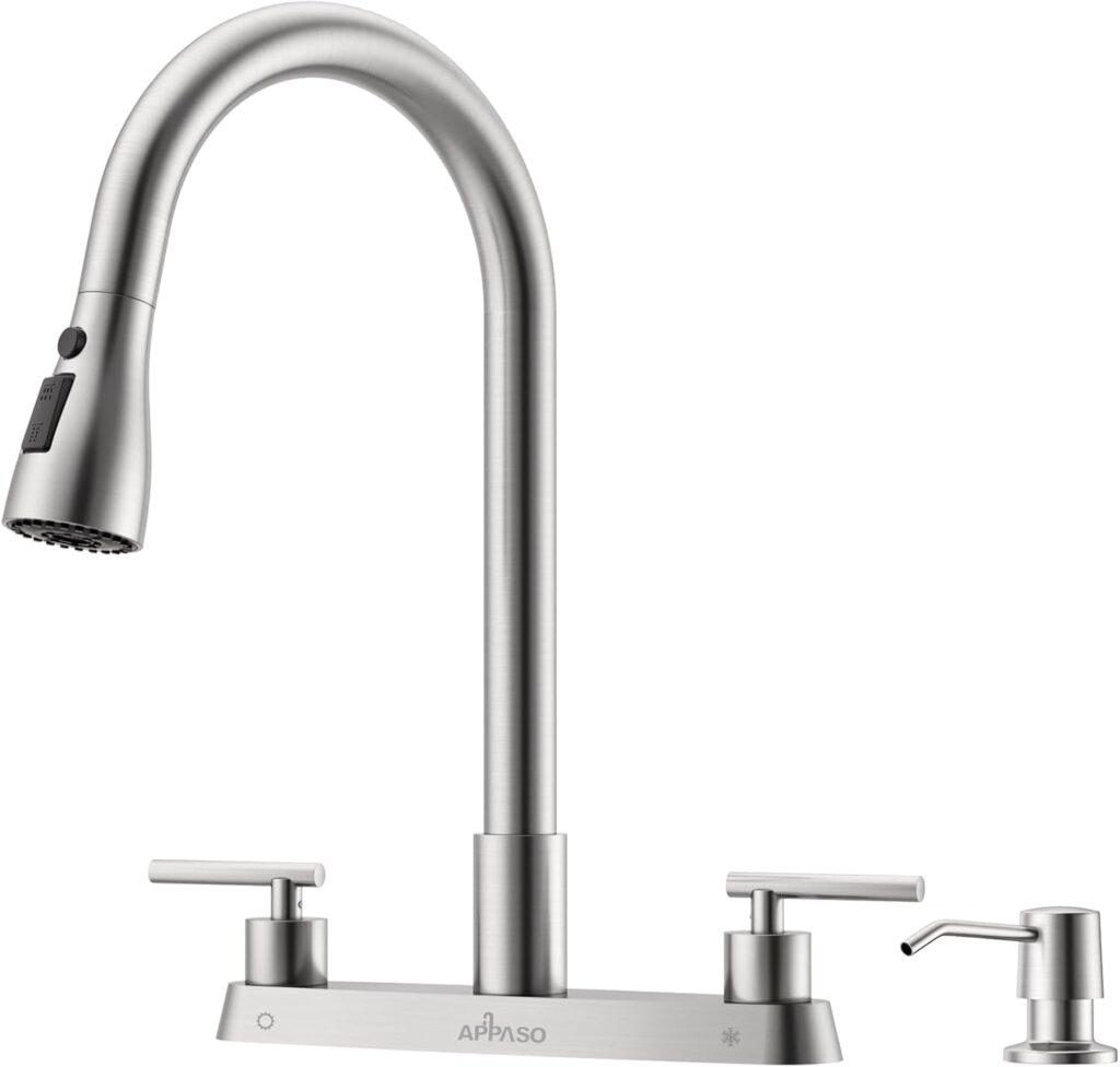 - Best Multi-Function Setup: APPASO 2 Handle Kitchen Faucet with Sprayer