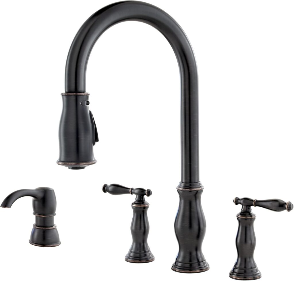 - Best for Bronze Accents: Pfister Hanover Kitchen Faucet with Pull Down Sprayer