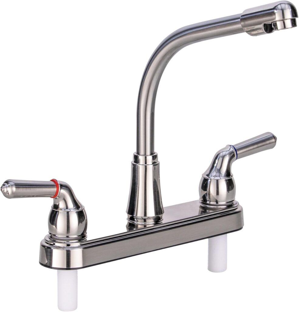 For an RV kitchen upgrade that balances style, durability, and ease of use, the Dura Faucet DF-PK330HC-SN hits the sweet spot. The high-rise J-spout makes filling taller pots easy, while the dual-lever handles offer precise temperature and flow control. The aerated stream is gentle enough to prevent splashes but strong enough to rinse dishes efficiently.