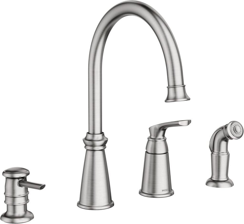 - Best for Coordinated Accessories: Moen 87044SRS One-Handle High Arc Kitchen Faucet